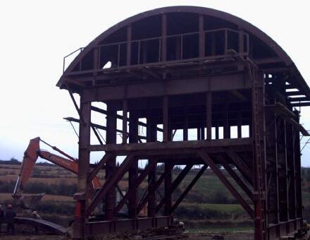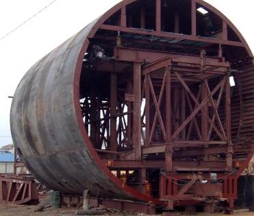 西安襯砌臺車主要用于中長隧道施工中,對施工進(jìn)度、砼表面質(zhì)量要求較高。此類襯砌臺車設(shè)計為整體鋼模板、液壓油缸脫立模,施工中靠絲桿千斤支撐,電動減速機(jī)自動行走或油缸步進(jìn)式自動行走,全部采用砼輸送泵車灌注。大部分襯砌臺車為該類臺車。設(shè)計該類襯砌臺車時,在滿足通過凈空要求的情況下,應(yīng)考慮門架內(nèi)側(cè)斜支撐下部安裝位置,盡可能靠近立柱下部,使之受力最好。門架橫梁應(yīng)足夠高,常規(guī)鐵路隧道不小于400mm,公路隧道不小于5500mm。模板端面與門架間的調(diào)整最小距離不小于250mm,否則將造成前后襯砌段搭接困難。